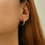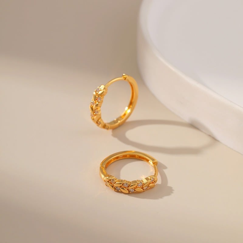 繊細なリーフモチーフにストーンをあしらったゴールドフープピアス。