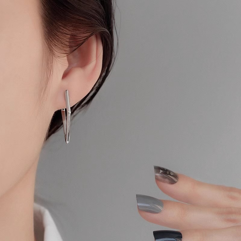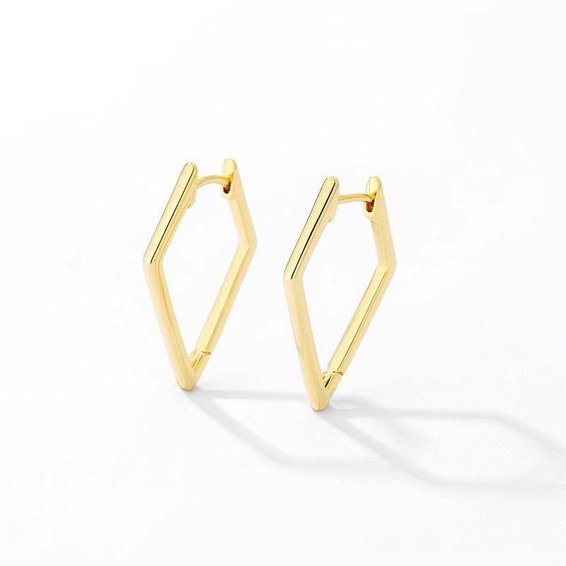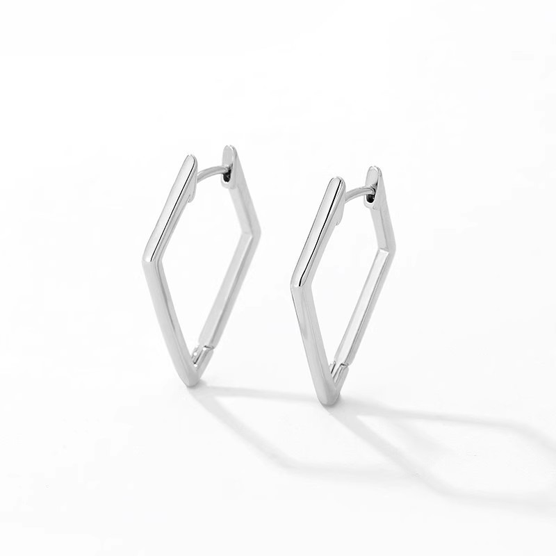 耳元にシャープでモダンな印象を与える、菱形(ひし形)のフープピアス