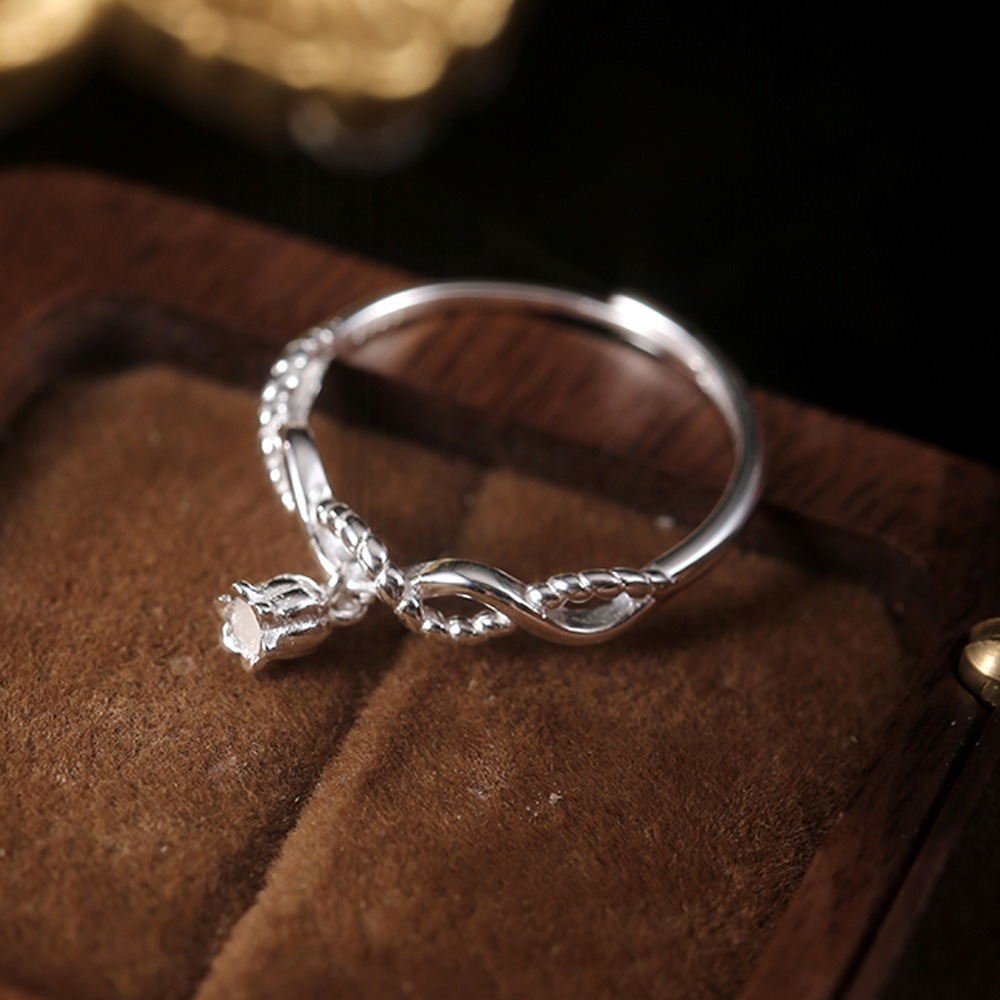 ツイスト部分は「永遠の愛」や「絆」を象徴し、揺れるチャームが手元に軽やかで上品な輝きをプラスします。 シンプルながらも動きのあるデザインで、指先を優雅に演出します。 大切な人へのプレゼントや、ご自身の愛用ジュエリーにおすすめです。