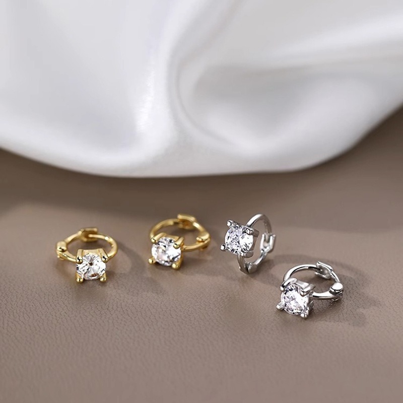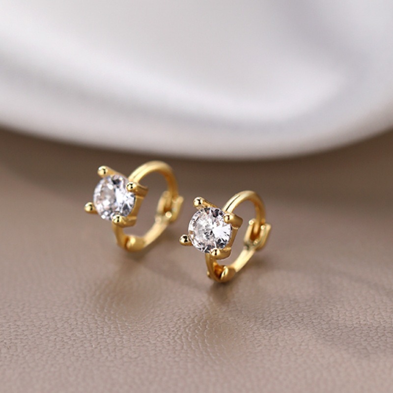 デザインの特徴: 一粒のストーンを地金でしっかりと固定し、そのストーンがフープの下部で揺れることなく固定されています。大粒の石が耳元で強い輝きを放ちます。