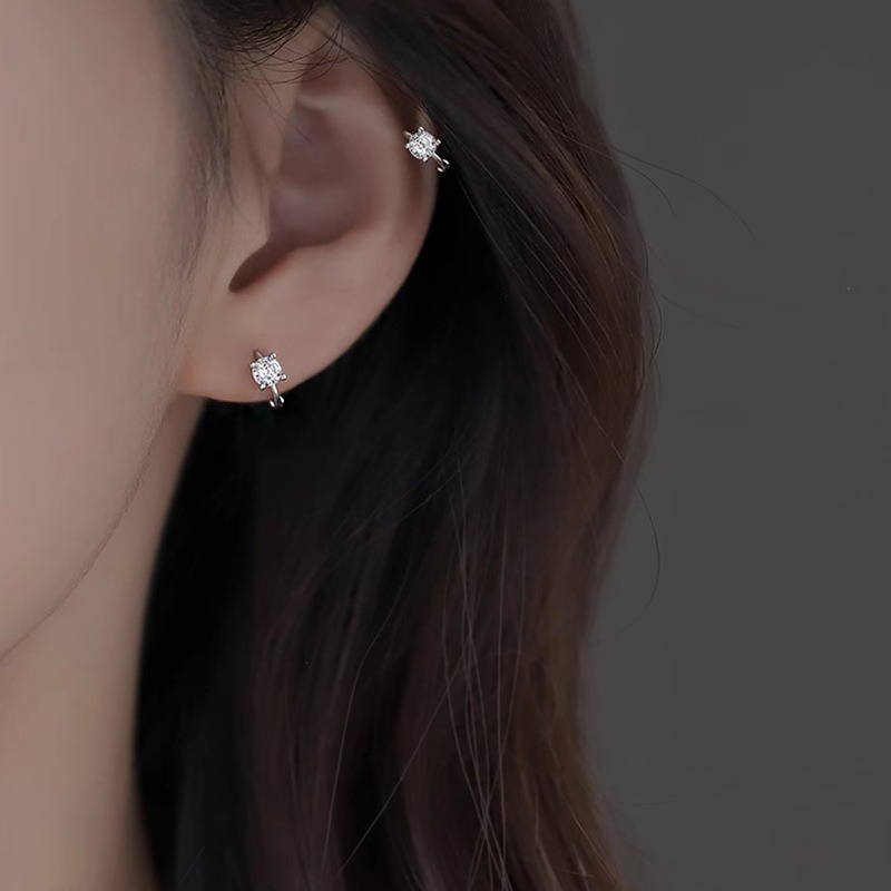 ミニフープに、シャープなスクエア(四角)カットのクリアストーンをセッティングしたピアスです。