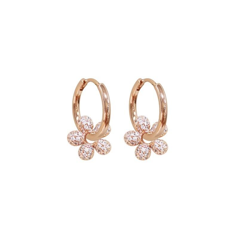 耳元で繊細に揺れる、可憐なフラワーモチーフのフープピアスです。