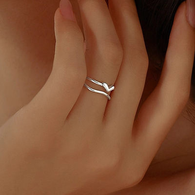曲線が織りなすアートのような、アシンメトリーでモダンなデザインのオープンリングです。