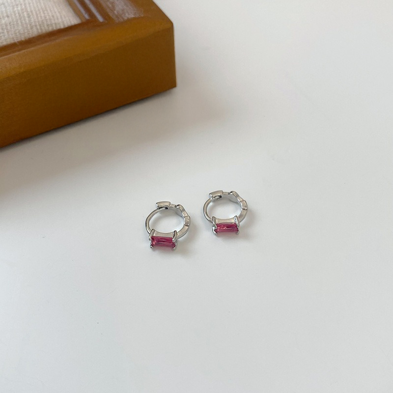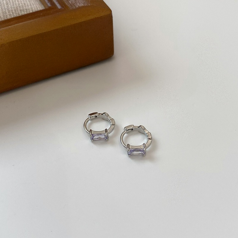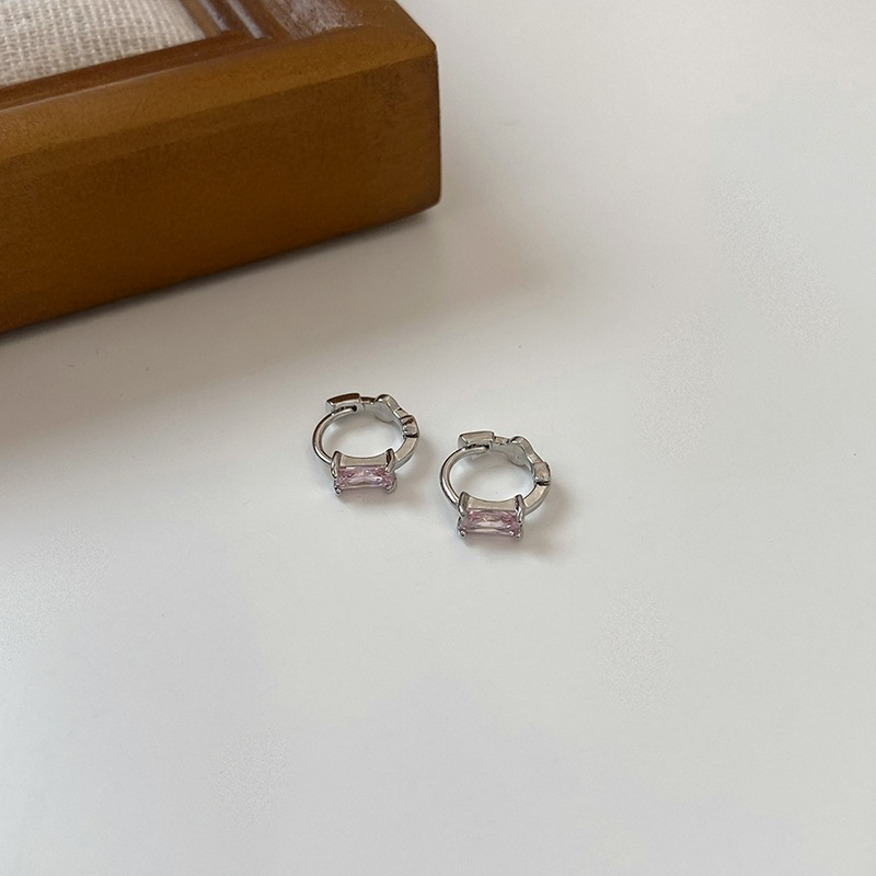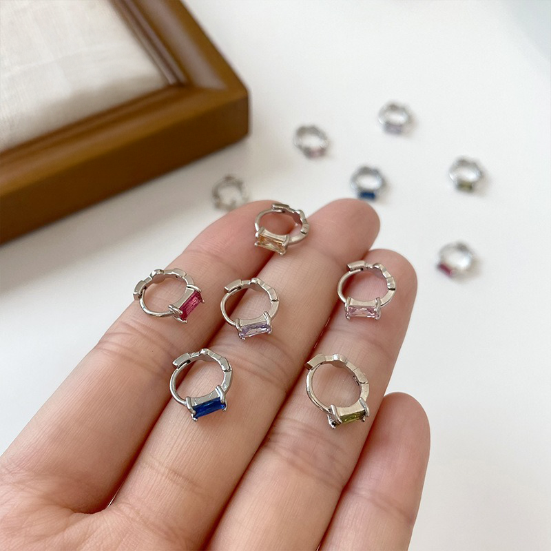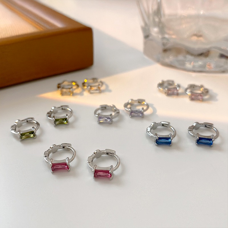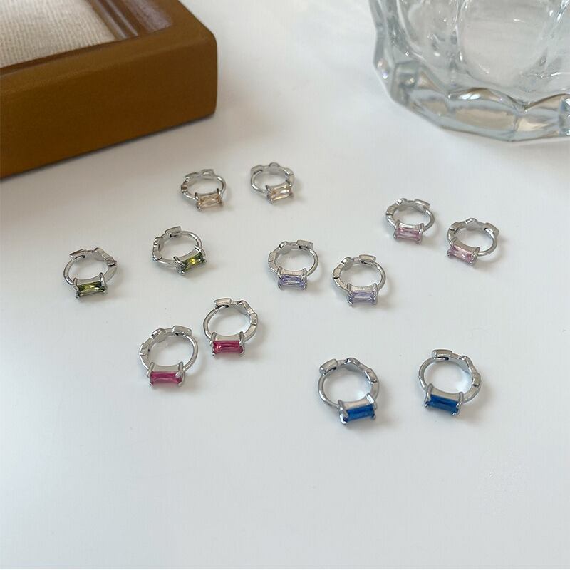 バゲットカットストーンの洗練された輝きが魅力のフープピアス。