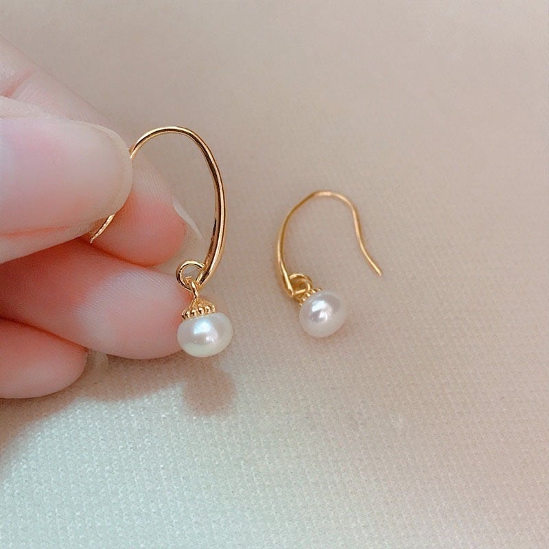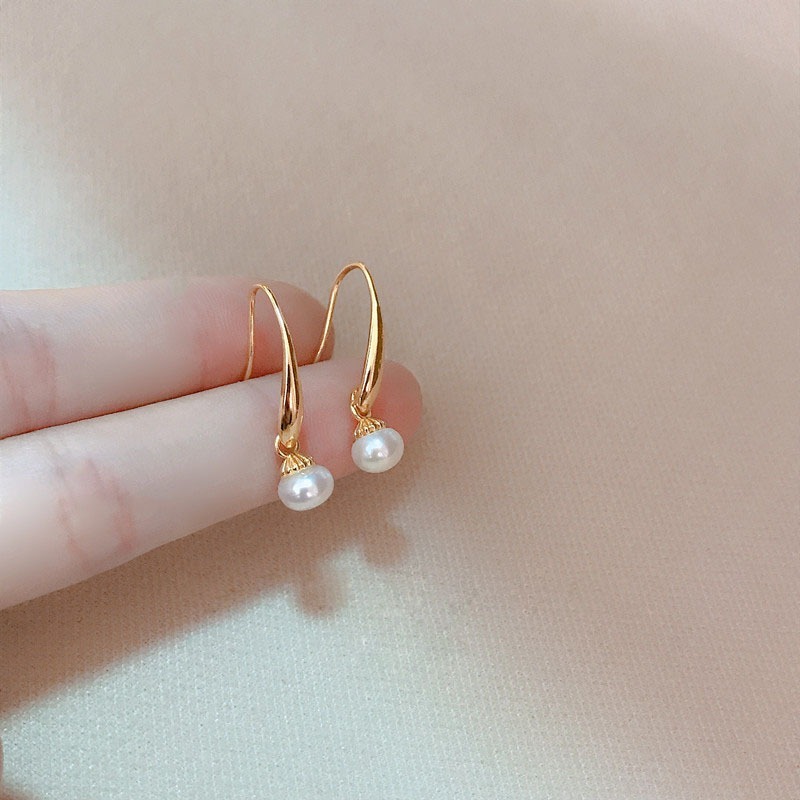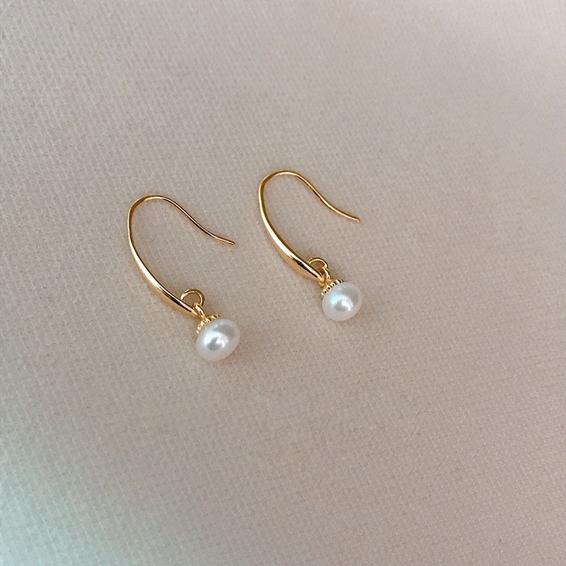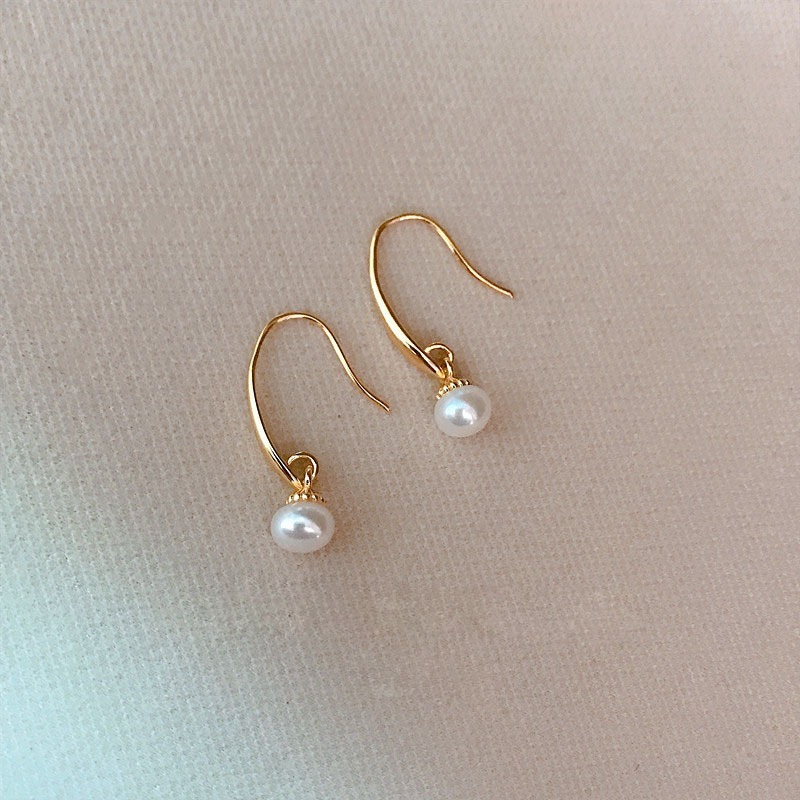 耳元で繊細に揺れる、小さなパールが一列に並んだフックピアスです。