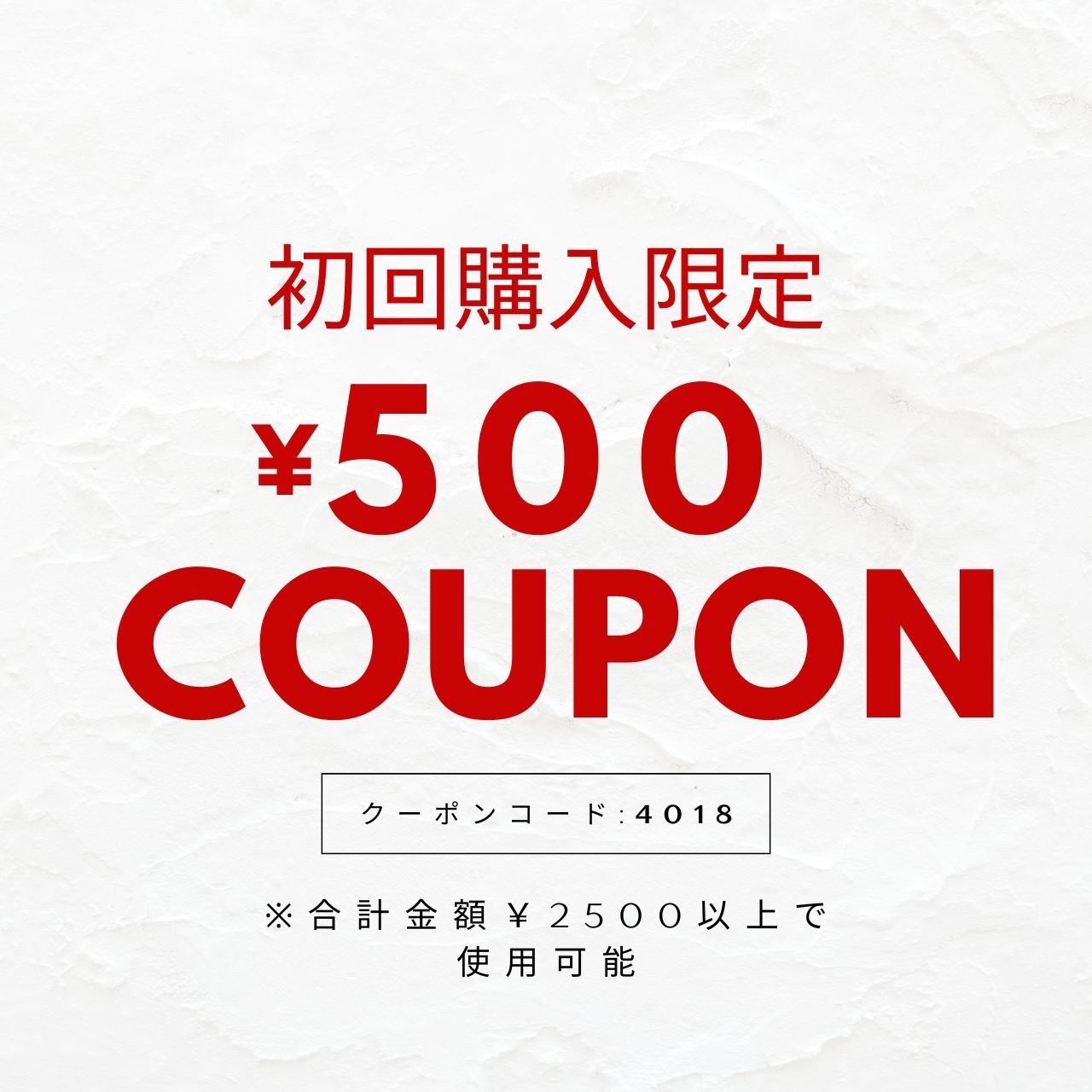 税込2,500円以上のお買い物(対象外商品、ご利用条件あり)に使える500円OFFクーポンをプレゼント。お一人様1回限り